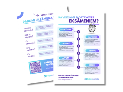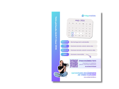 Eksāmeni pārbauda ne tikai zināšanas, bet arī pašdisciplīnu un spēju neapjukt stresa situācijās. Lai izvairītos no pēdējā brīža steigas, sāc gatavoties jau tagad! Piefiksē svarīgos datumus un ņem vērā ieteikumus, kas palīdzēs sasniegt Tavus mērķus!