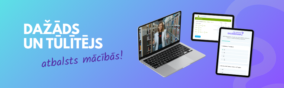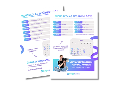 Palīgsmācībās.lv video kursos visas eksāmena tēmas pieejamas vienuviet. Noskaties video ar vienkāršu skolotāja skaidrojumu un izpildi testu vai citus papildu materiālus katras tēmas noslēgumā, lai labāk iegaumētu! Nav jāplāno, kad doties pie privātskolotāja, jo visi materiāli pieejami uzreiz, lai mācītos jebkurā sev ērtā laikā un atbilstošā mācību tempā.