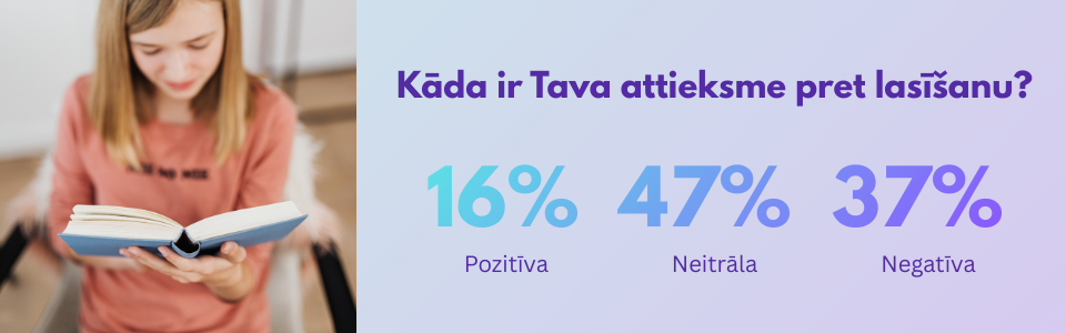 • Pozitīvu attieksmi pret lasīšanu pauda 16% skolēnu, 47% tā bija neitrāla, bet 37% - negatīva.